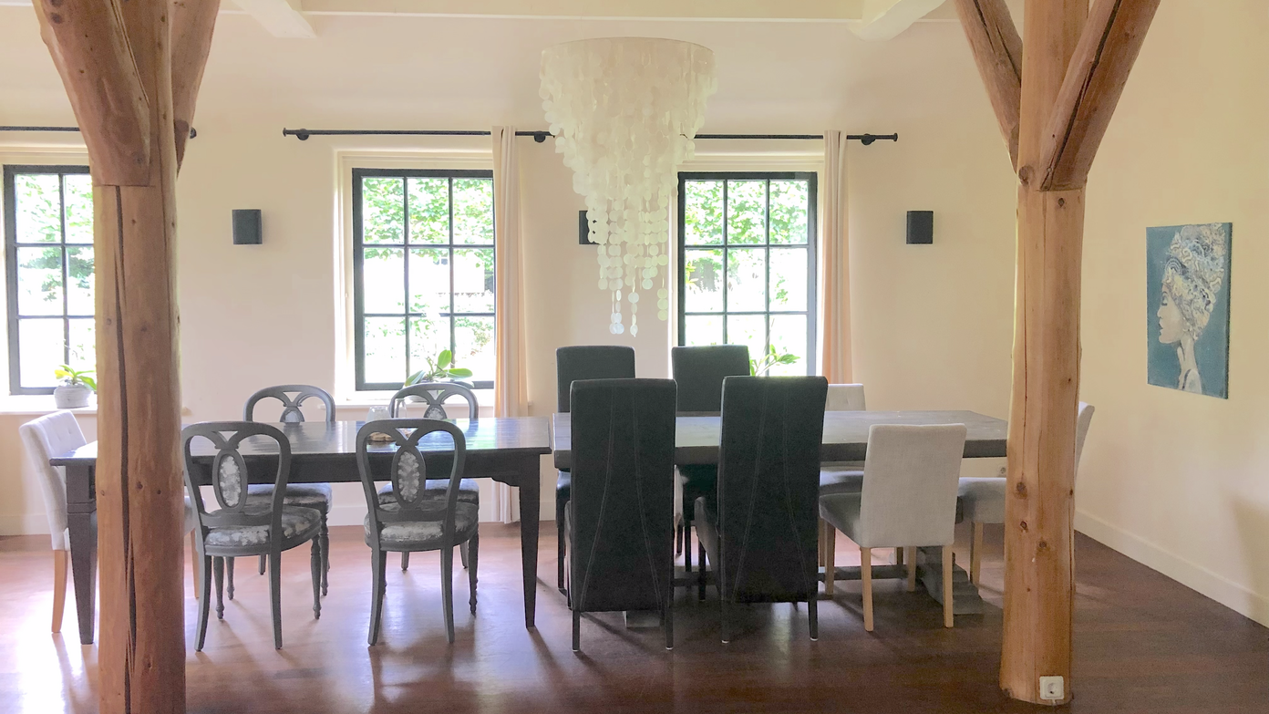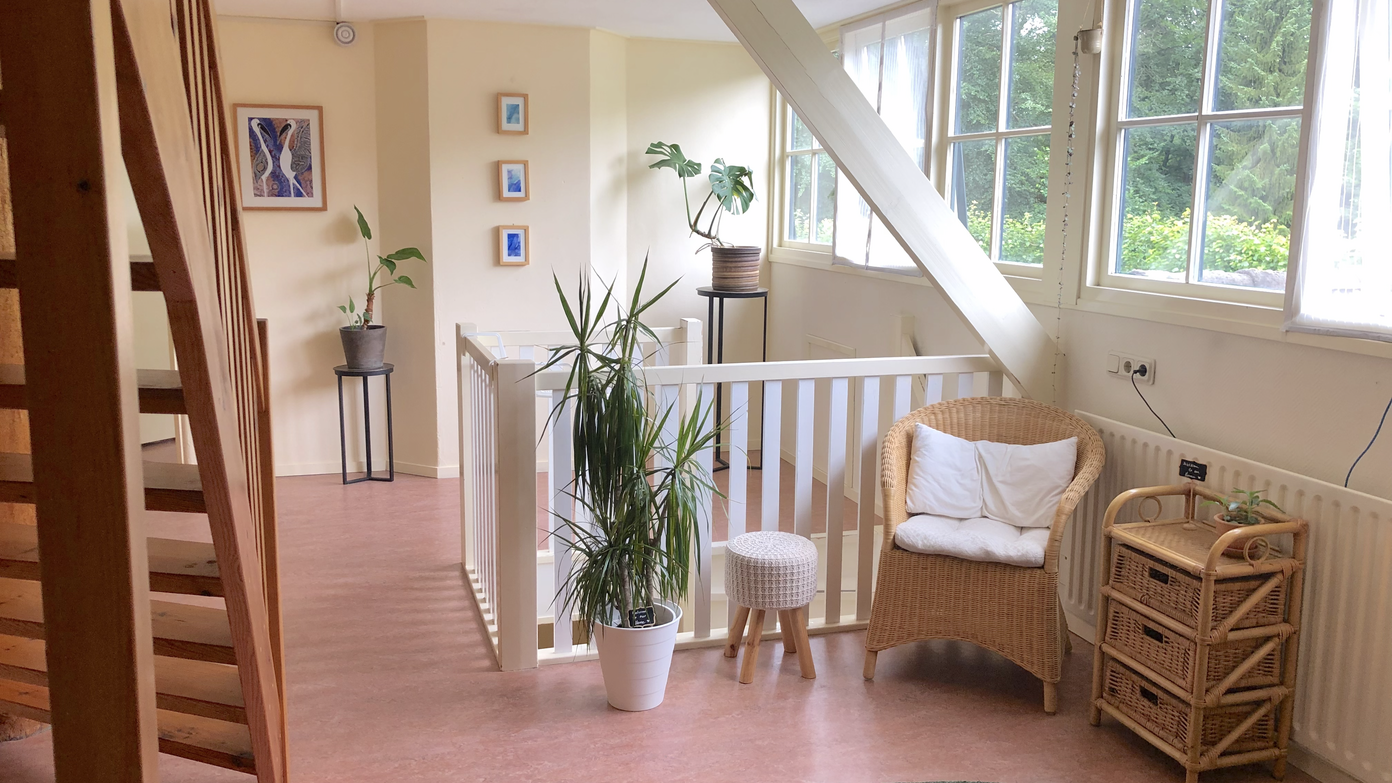 For smaller circles, breakout sessions, or a more home-like atmosphere, the Almond Room is a hidden gem within the house. This 52 m² space is bathed in natural light and warmed by its solid, embracing energy. With a high-quality sound system and room for up to 20 people, it’s perfect for workshops, meditations, or softer ceremonial spaces.